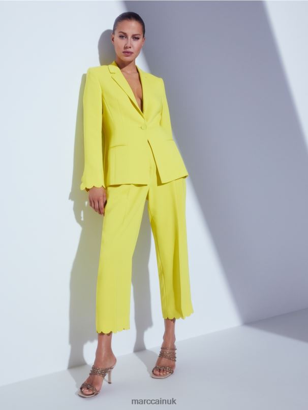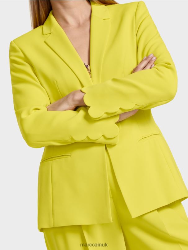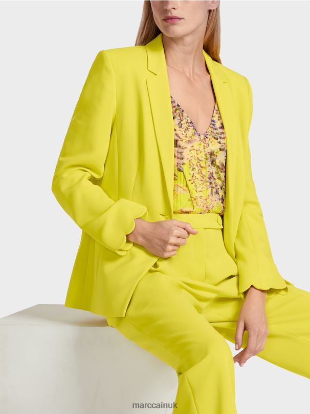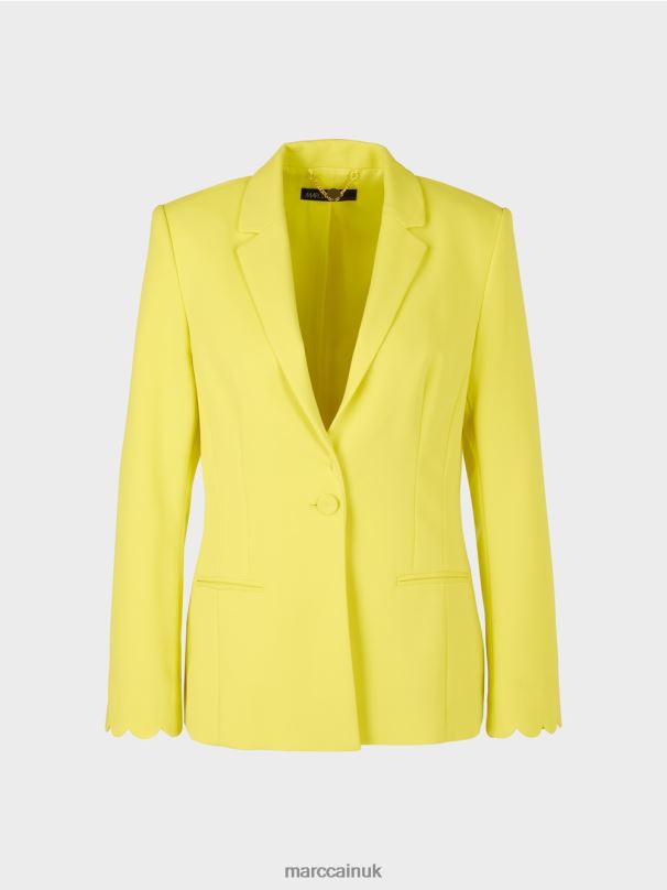 The Close-fitting Shape Of This Blazer Is Achieved Via The Princess Seam. The Lightweight And Flowing Material Gives It A Soft Silhouette. There Are Subtle Welt Pockets And A Narrow Lapel On The Front. The Scalloped Sleeve Hem Adds A Decorative Detail. The Blazer Also Has A Rear Vent.