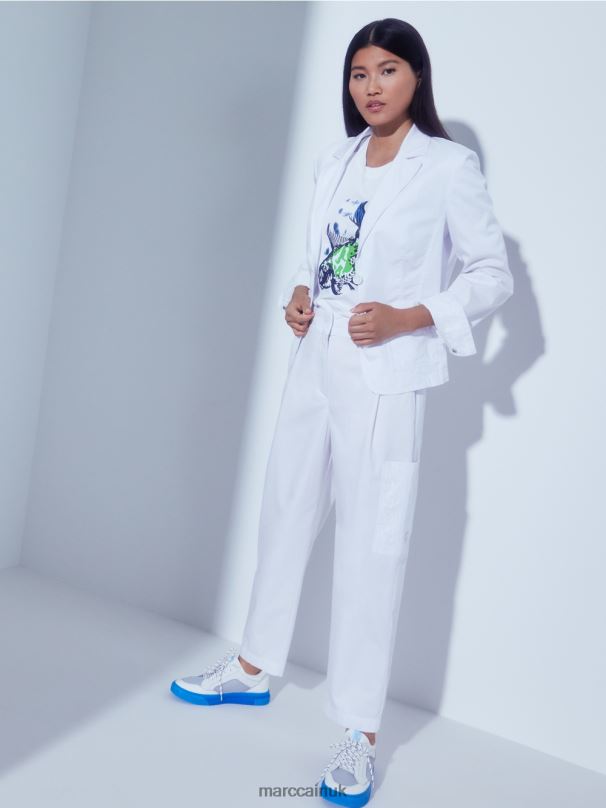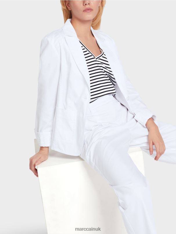 Made From Organic Cotton With A Slight Stretch, This Blazer Brings Sustainability To Your Business Wardrobe. The Solid Colour Jacket Has A Slightly Rising Lapel And Patch Pockets. The Princess Seams And Darts Ensure A Figure-hugging Fit. The Single-breasted Jacket Is Fastened By Two Buttons With MC Lettering.