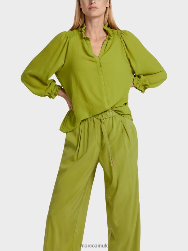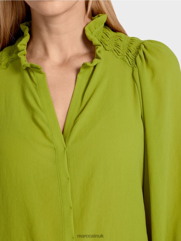 The Material Of The Blouse Creates A Softly Flowing Silhouette. The Width Of The Raglan Sleeve Can Be Adjusted At The Shoulder With A Striking Smocking Effect. A Frilled Collar Fits This Style Perfectly, While The Mock Fastening At The Front Adds A Decorative Detail. This Blouse Bears The "Rethink Together" Sustainability Label.